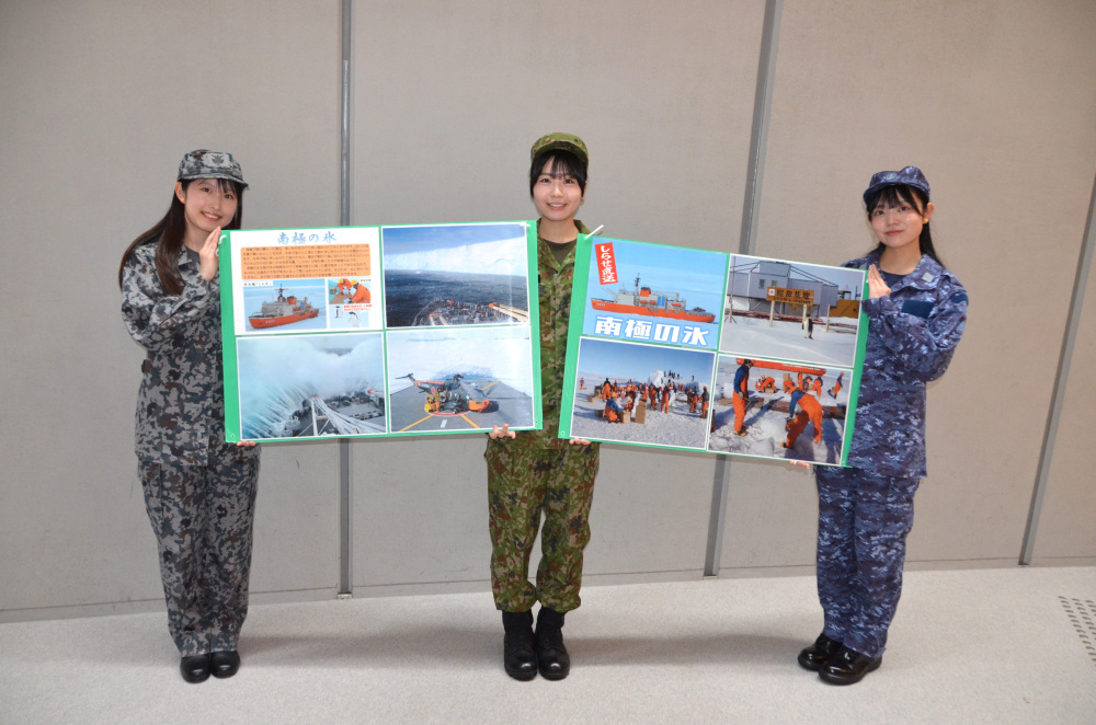 会場では自衛隊のブースも出展されており、子どもたちに大人気な制服を試着できるコーナーや、南極観測船「しらせ」から送られてきた南極の氷を見て、実際に触れる体験もさせていただきました🧊