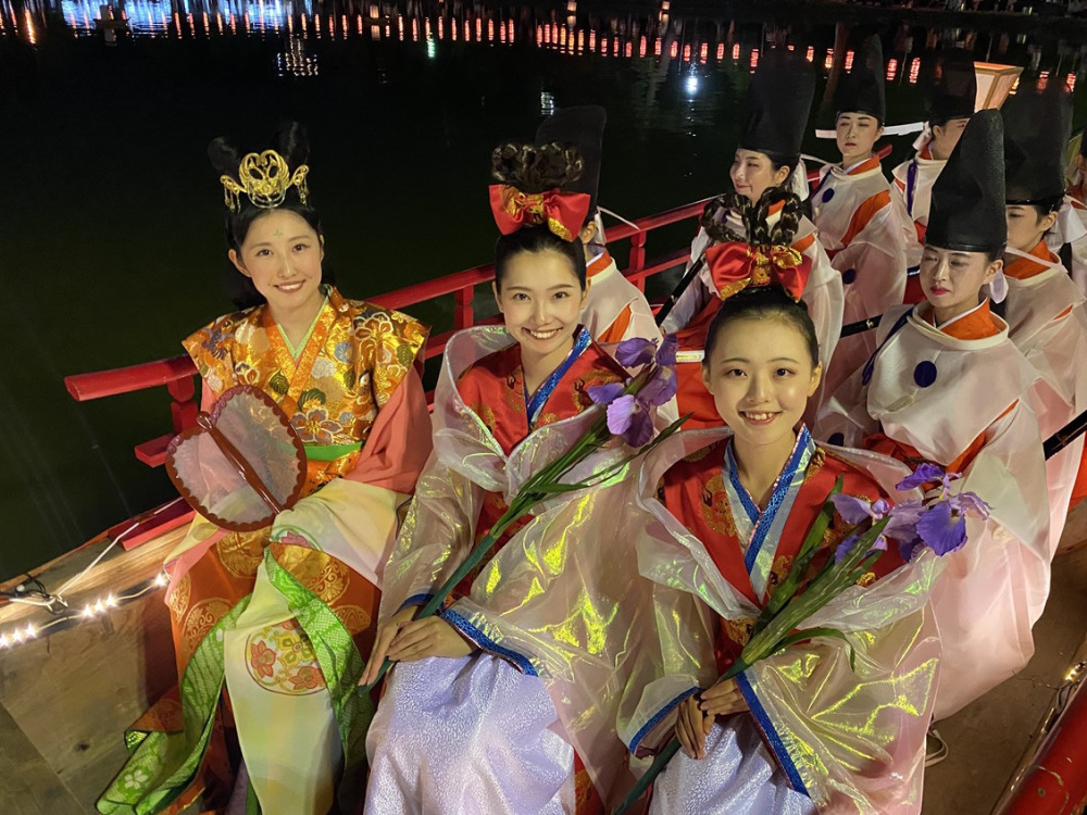 管絃船の儀では猿沢池周辺にたくさんの方にお越しいただき、私もミスうねめさんたちと一緒に船に乗せていただきました🏮