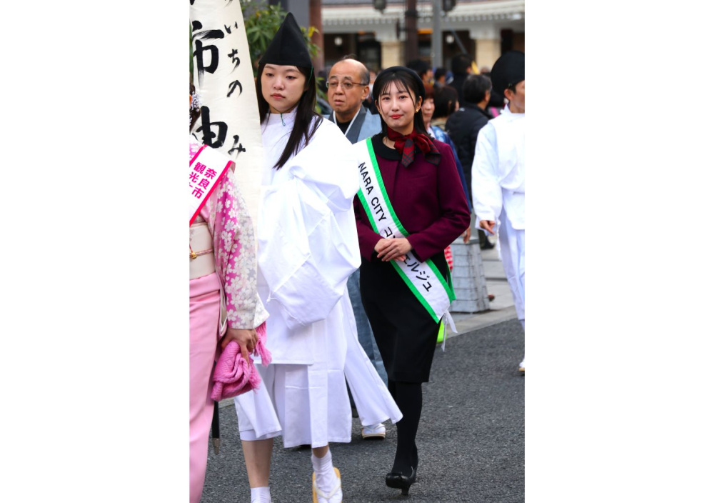 今回参列をした行列では まずJR奈良駅を出発し、三条通りをはじめとする地元各商店街を通って餅飯殿センター街にある大宿所まで練り歩きました!