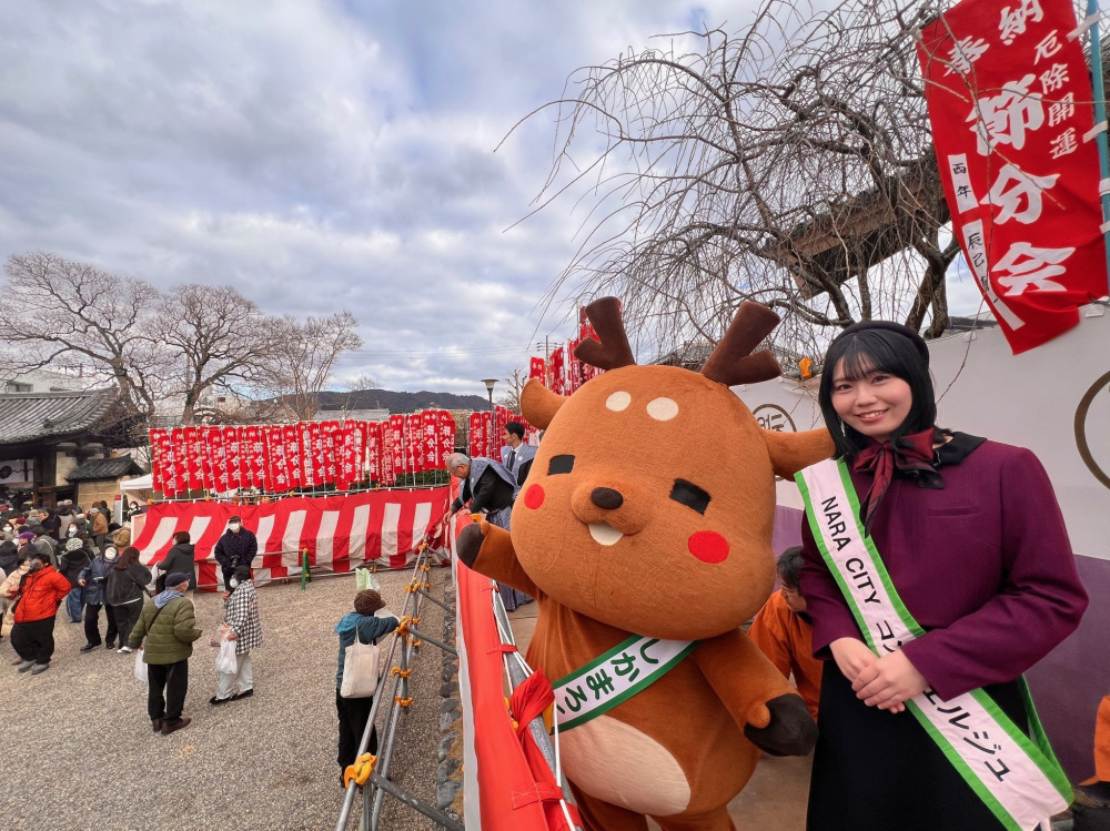 2月3日、元興寺にて行われた「節分会」の豆まきに参加させていただきました!年男の皆さまと共に、本年はしかまろくんも舞台から一緒に豆まきをいたしました🦌