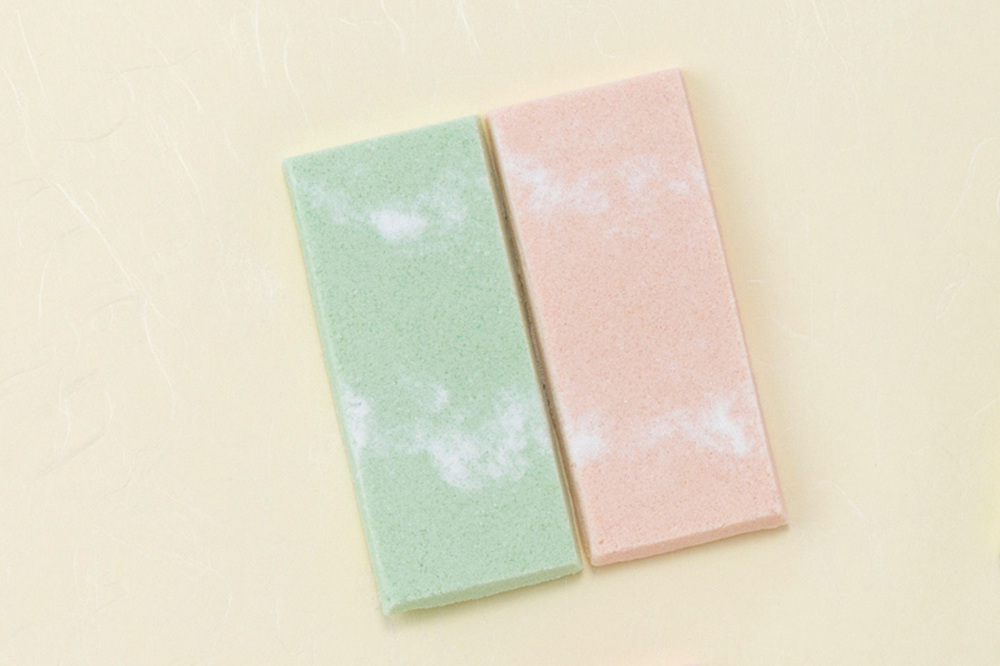青丹よしは、和三盆糖※と吉野葛、寒梅粉(かんばいこ)※を使って作られた短冊形の干菓子。