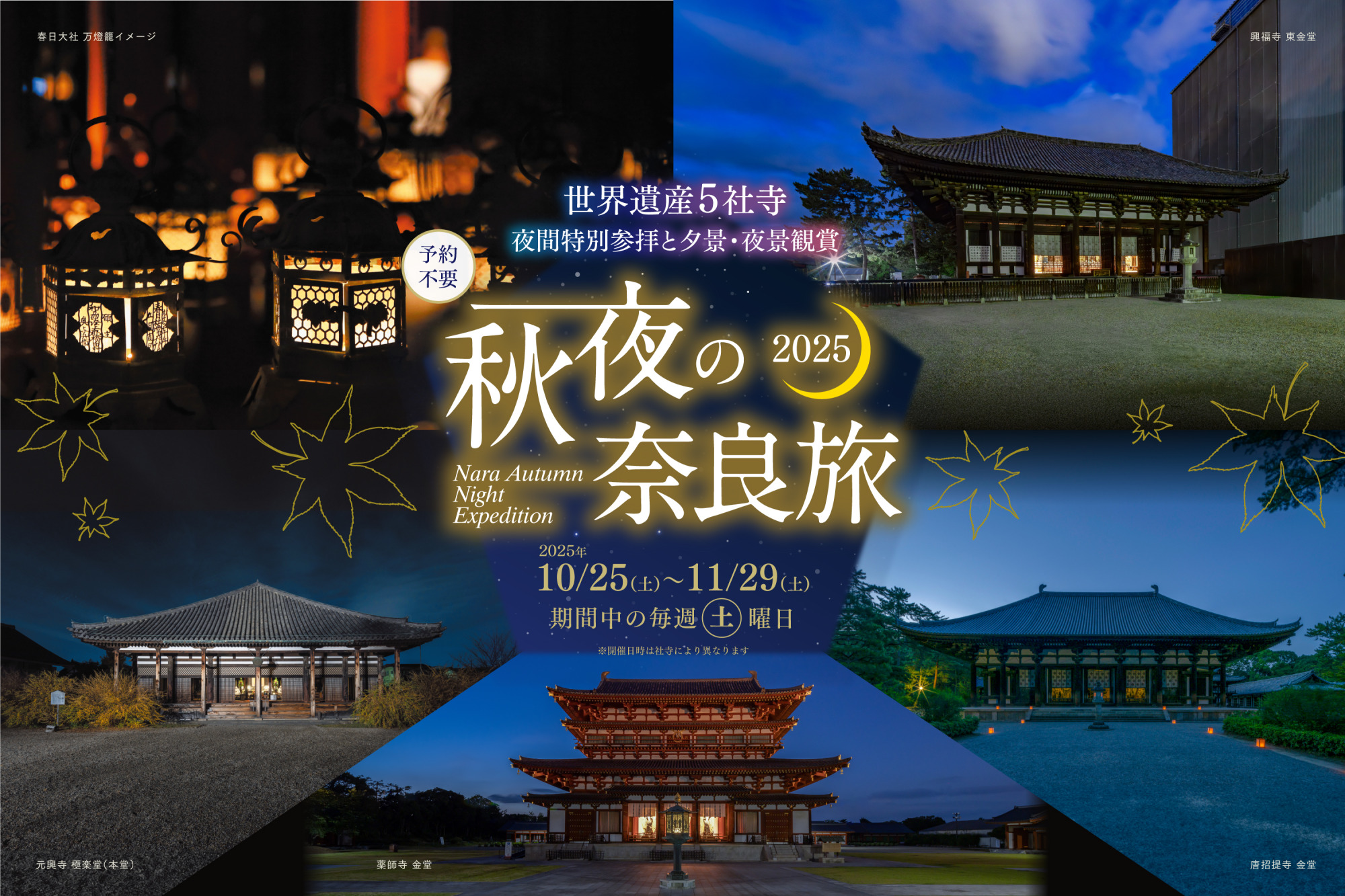 - 古都奈良の秋の夜を満喫できる「秋夜の奈良旅2025」が、世界遺産5社寺で開催されます。創建時(奈良時代)の姿を残す金堂(国宝)で、盧…