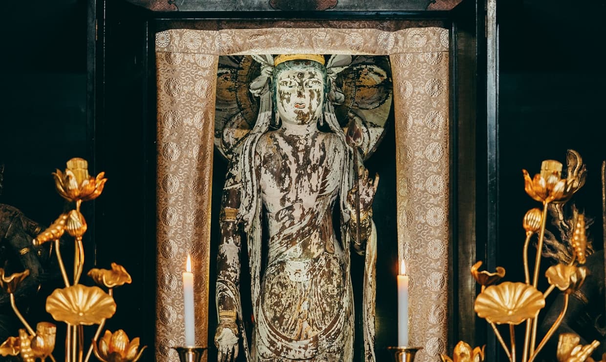 奈良時代、仏教の力で病や貧困に苦しむ人々を救おうとした社会福祉事業の先駆者である光明皇后創建のお寺(正式名:法華滅罪之寺)。女性のための総国分尼寺として創建された格式ある尼門跡寺院です。その慈悲深い心は、皇后の姿を写したと伝わる本尊の国宝・十一面観音菩薩立像(春季と秋季など年3回特別公開)や、皇后が貧者や病者を沐浴させて救ったとされる境内の「浴室(からふろ)」などから今に伝わります。