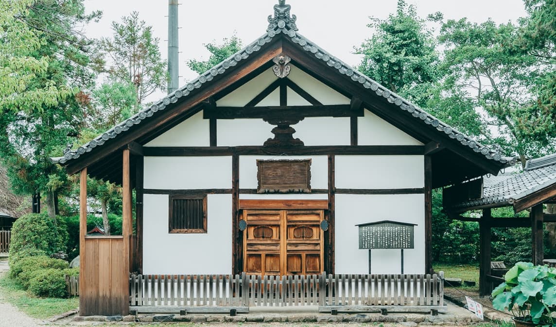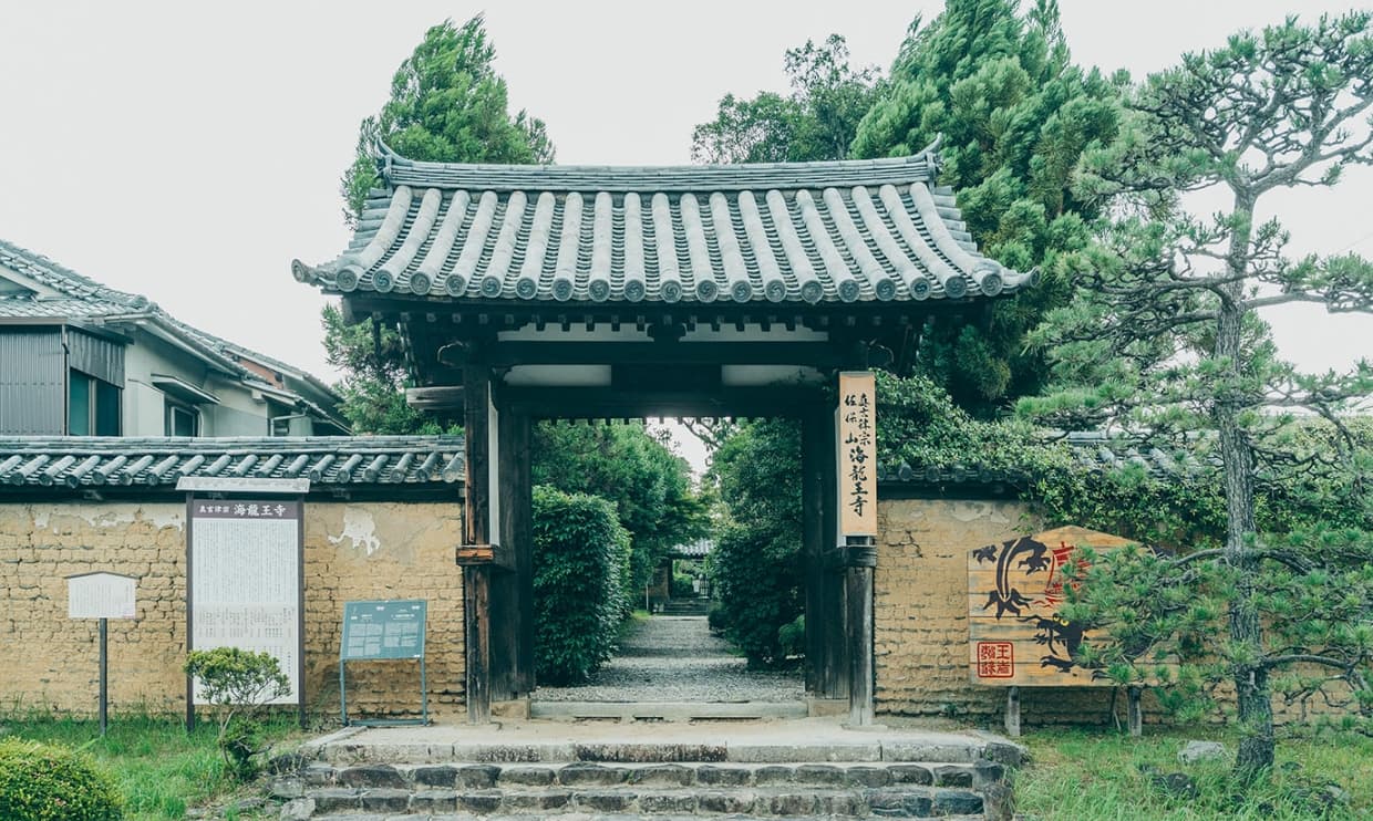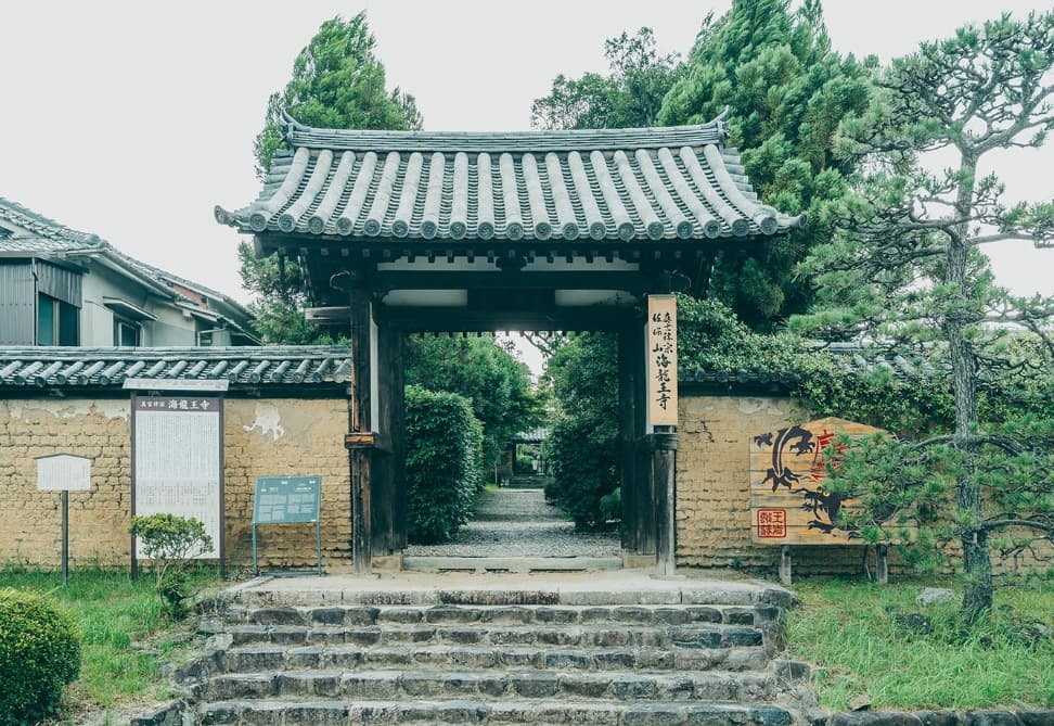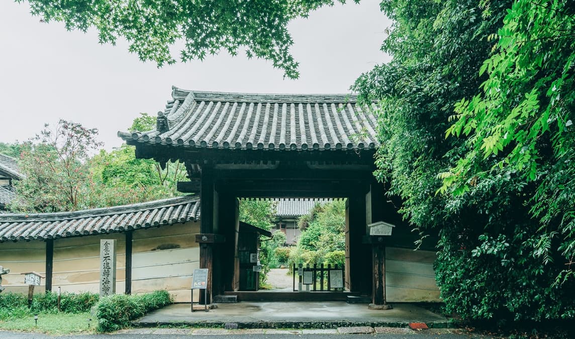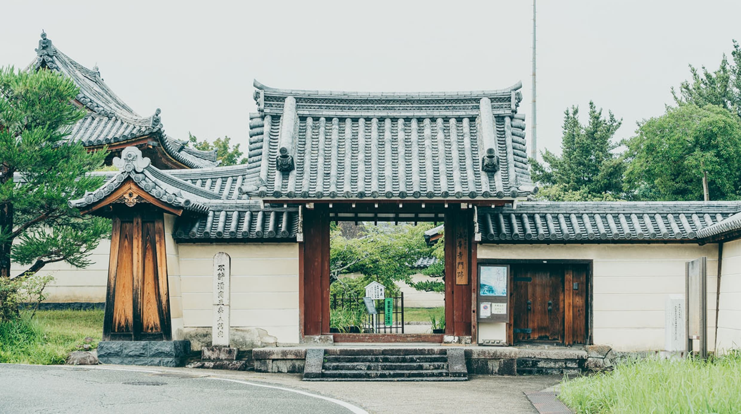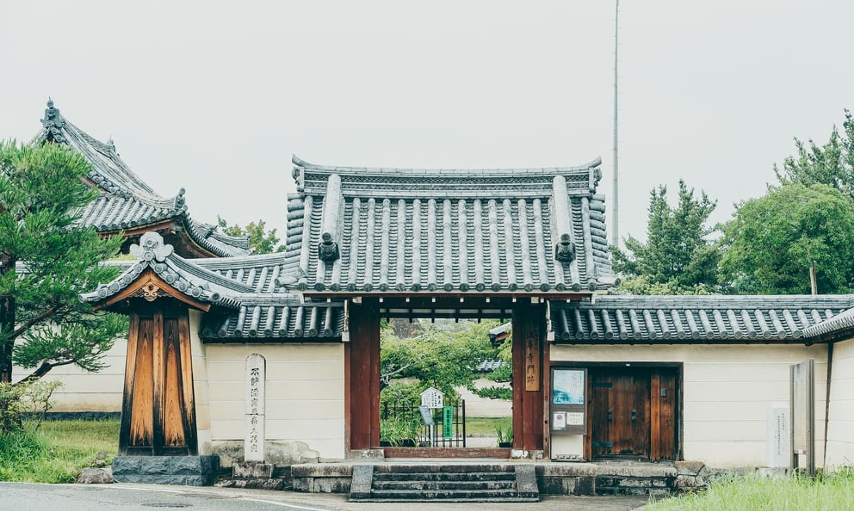 山門と築地塀は佐保路の代表的な風景のひとつ