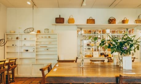 オーナーの石村由起子さんが、奈良の線路沿いにたたずむ一軒の建物と出合い、1983年に始めた「くるみの木」。カフェをはじめ食料品、台所用品、食器などの生活道具から衣類、さらには学びの場まで。暮らしに関する“もの”や“こと”をひとまとめに眼差すライフスタイルショップの先駆けであり、日本各地から人が訪れます。