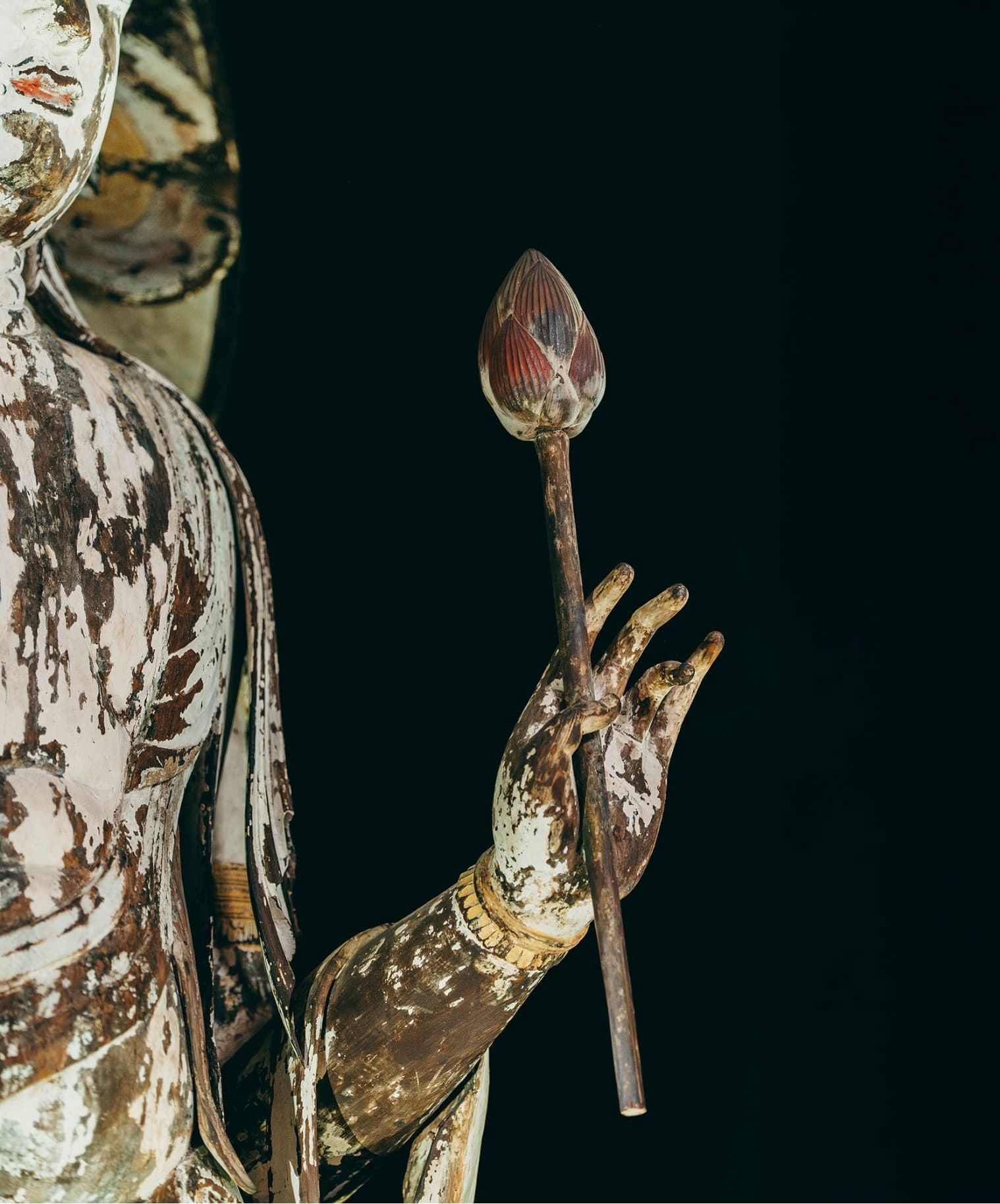 左:不退寺 聖観音菩薩立像(部分)右上、右下:くるみの木