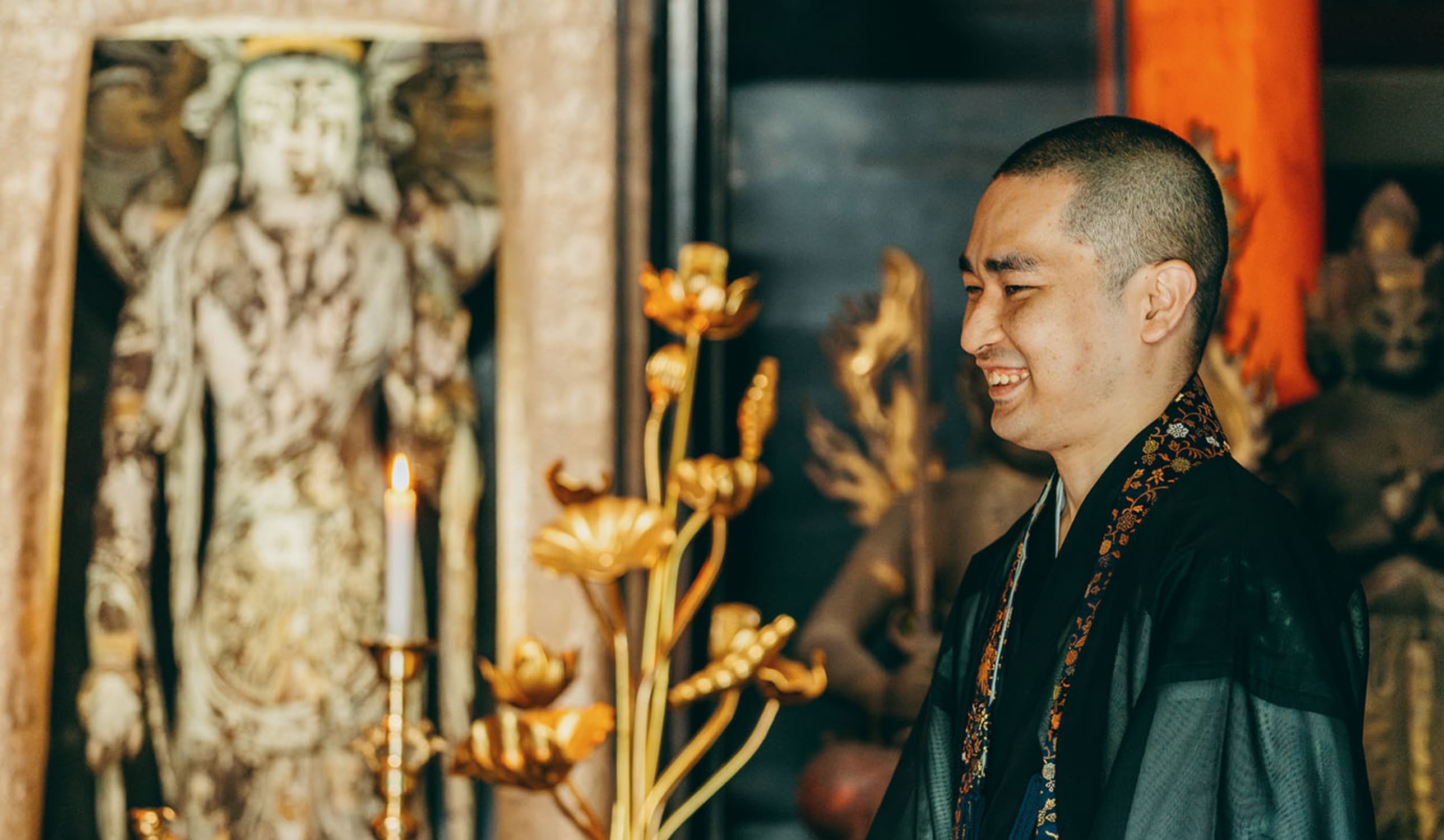 現在、僧侶として不退寺に暮らす津賢さんに、本堂や境内など不退寺の見どころを案内していただきました。