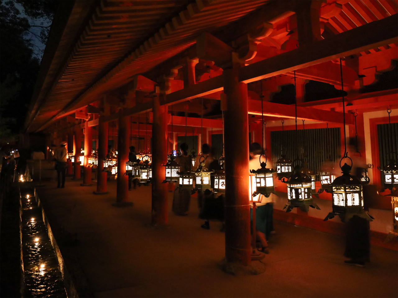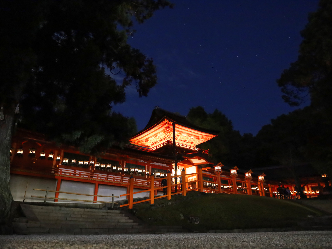 境内には、さまざまな形の釣燈籠、石燈籠が奉納され、貴族や武士のみならず、庶民の寄進も多く、庶民からの信仰の深さも伺い知ることができます。毎年2月節分の日と8月14・15日にすべての燈籠に火を入れる「万燈籠」の神事が行なわれ、その幻想的な美しさに、多くの参拝者が訪れます。