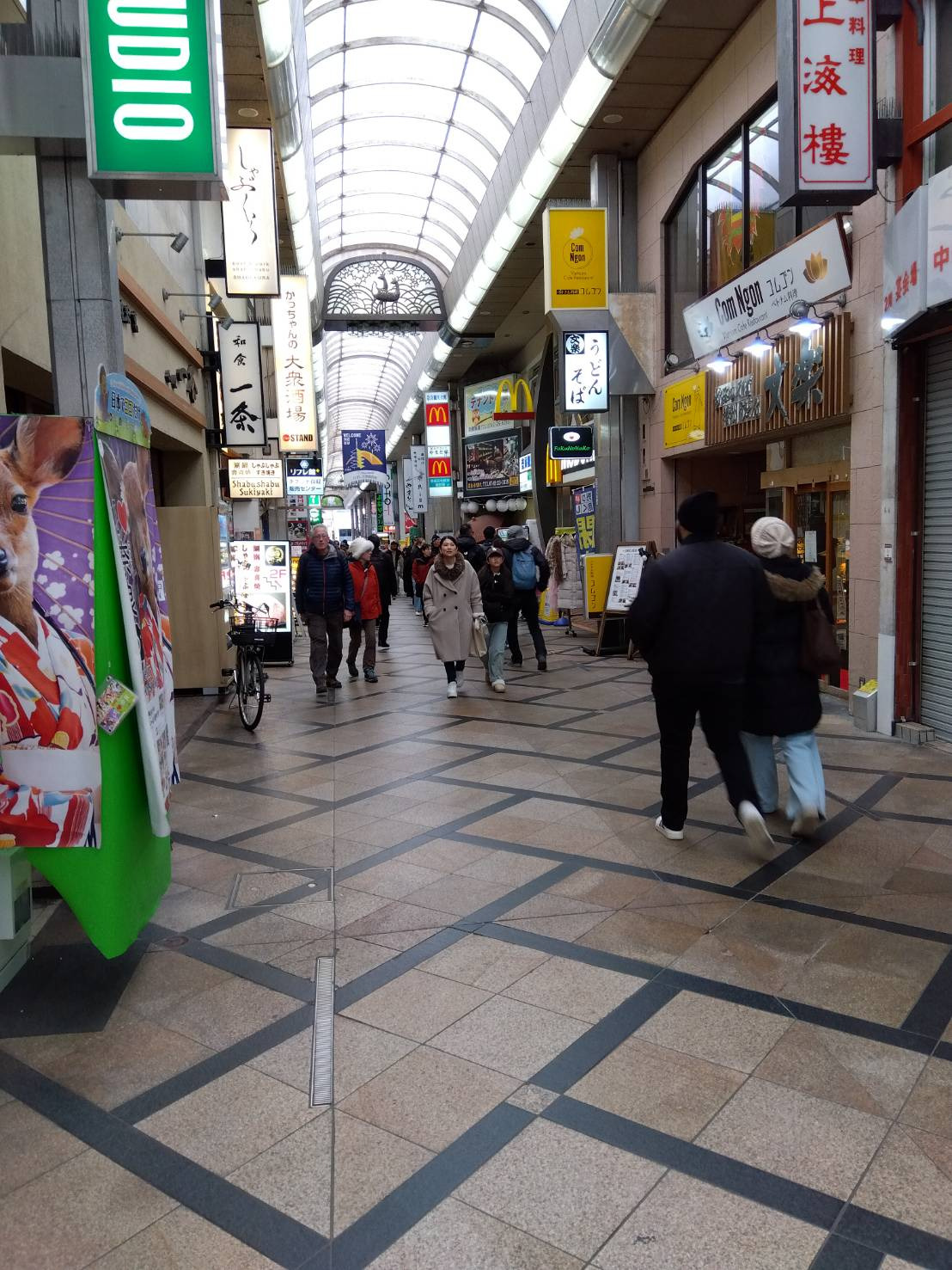 近鉄奈良駅前の行基広場から南へと延びるアーケード街で、奈良で最もにぎわう商店街です。ショッピングや食事など多彩な商店が並んでいます。